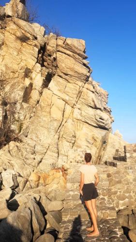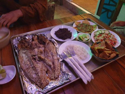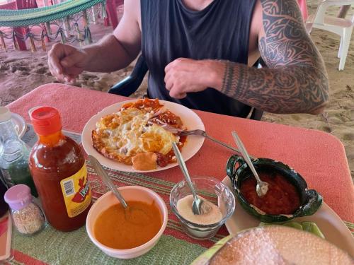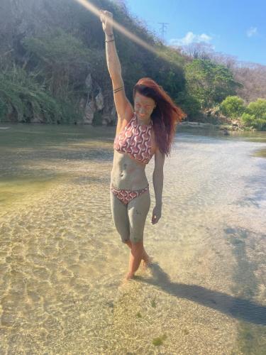 Die Nachmittage verbringen wir dann entweder am Fluss, entfernen Hunderte kleiner Kaktusstacheln aus unserer Haut, oder packen Ibrahim ein und fahren an den Strand, wo wir Rossi treffen und uns gemeinsam in die Fluten hauen. Abendessen wird dann wieder über Feuer gekocht oder nach Strandbesuchen bleiben wir dafür gleich in Puerto Escondido – entweder bei einer großen Taquería, von deren Salsas wir einfach nicht genug bekommen können, oder in einem kleinen Fischrestaurant, das uns am ersten Abend empfohlen wurde und für das wir am letzten Tag sogar extra noch einmal den etwas weiteren Weg von der Ranch nach Puerto Escondido auf uns nehmen.