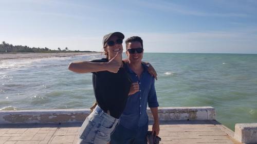 Nachdem wir auf unseren Flügen von Hawaii nach Mexiko weder von Hawaiian Airlines (5h Flug!) noch von Aeromexiko (4,5h Flug) ein Essen serviert bekommen haben, und Hawaiian Airlines sich zusätzlich mit kostenpflichtigen Kopfhörern vollständig aus unseren Herzen verbannt hat, werden wir nach einem weiteren kurzen Flug nach Cancun von einem Stück Grazer Heimat empfangen. Breites, strahlendes Lächeln und gut von der Sonne vorgebräunt schließt uns der Verursacher unserer bereits seit Tagen anhaltenden Vorfreude in die Arme: unser lieber Freund Falko. Und weil wir uns so freuen, ihn zu sehen, verzeihen wir ihm auch direkt, dass er es nicht geschafft hat, seiner einzigen Aufgabe, die er in den paar Tagen Mexiko ohne uns hatte, vollumfänglich nachzukommen – die Organisation eines fahrbaren Untersatzes. Aber egal. Wer kann denn einem Sonnenschein wie Falko schon böse sein. Fünf Kreditkartenversuche später gehört der weiße Chevrolet dann uns und es geht direkt auf nach El Cuyo. Mit schönen Treibhölzern und Makrameekunst dekorierte Bretterbuden und bunt bemalte Häuschen, ein paar kleine Cafes, abends eine Auswahl von nur 5 Imbissbuden und Restaurants, weißer Sand und Kokospalmen, wohin man blickt, gemütlich über das türkise Meer segelnde Pelikane, und das alles genau vor unserer Haustüre. Perfekt, um den Jetlag abzuschütteln. Das einzig etwas Unangenehme ist, dass es wie in vielen anderen Ortschaften Mexikos auch in El Cuyo Probleme mit der Wasserversorgung gibt. Die lang ersehnte Dusche nach knapp 24h Anreise kommt also für die nächsten zwei Tage aus unseren Trinkwasservorräten – fair aufgeteilt in je einer 1,5-Liter-Flasche. Und wer ein großes Geschäft am Klo verrichten muss, verzichtet dann halt auf die Dusche. Entweder – oder.
