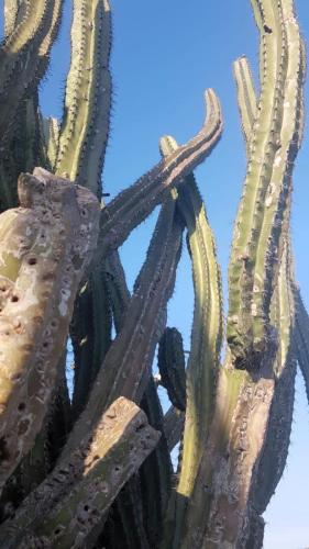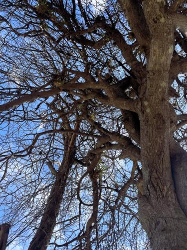 Mit den Einheimischen fangen wir hier leider eher weniger an, da wir meist nur genervt wirkenden Menschen begegnen. Ob hier einfach nur überproportional viele Einzelpersonen gleichzeitig einen oder mehrere schlechte Tage haben, man es allgemein lästig findet, wenn man sich wegen eines Konsumenten bewegen muss oder die Menschen hier grundsätzlich null Bock auf (weiße?) Touris haben, können wir natürlich nicht genau sagen. Wir widmen uns in San Jose daher voll und ganz der Natur und treiben uns vor allem in den magischen Wäldern herum, die ein Sammelsurium aus überdimensionierten Agaven- und Kakteenpflanzen sowie hochgewachsenen, bemoosten und mit Tillandsien bewachsenen Bäumen sind, deren äußerste knorrige Baumrinde vermutlich jeweils eine lange Geschichte zu erzählen hat. An einem der Tage wandern wir – wie können es selbst noch nicht ganz glauben – sogar einmal bis ganz hinauf auf den Berggrat, um dort Matthias enttäuscht feststellen zu lassen, dass es keine Lichtung gibt, sondern das Ziel einfach nur ein Weg ist. Eine gute Jause aus unserem vollbepackten Rucksack richtet’s dann aber schnell wieder!