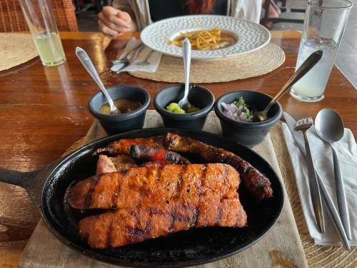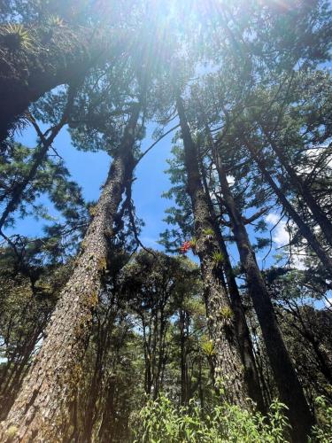 Da wir mit dem Angebot auf Booking.com sowie auf Airbnb nicht besonders glücklich waren, fahren wir hier erstmalig auf unserer Reise einfach ohne Reservierung hin, geben uns aber mit der zweiten Unterkunft zufrieden und beschließen 3 Tage zu bleiben. Erste Tat nach Ankunft: in lange Hosen schlüpfen und Pullis überwerfen, wobei die Temperaturen auf alle Fälle eine willkommene Abwechslung zur schwülen Hitze an der Pazifikküste sind. In dem 350-Einwohner:innen-Dorf, in dem man sich bei der Betrachtung mancher Gesichter und körperlicher Konfigurationen wieder daran erinnert, dass genetische Nähe bei der Fortpflanzung oftmals Nachteile mit sich bringt, fühlen wir uns bei der Ankunft zuerst mal wie in einem Wattebausch. Einerseits wegen der geringen Dichte an Menschen und andererseits wegen des dichten Nebels, der die Akustik zu verschlucken scheint und alle Gespräche wie im Flüsterton erscheinen lässt. Warum der Nebel als Touristen-Highlight gehandelt wird, verstehen wir am Tag unserer Ankunft noch nicht. Klar wird uns das erst am darauffolgenden Tag, an dem uns tagsüber die Sonne wärmt und sich der Nebel am späten Nachmittag diesmal nicht nur als eine graue Wand zeigt, sondern sich mystisch um die Bergkuppen legt und wir bei Sonnenuntergang über dem Nebel in den weit zurückgelehnten Holzstühlen unserer Unterkunft ein beeindruckendes Farbenspiel beobachten dürfen.
