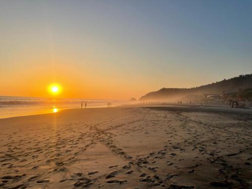 Am Nachmittag kehren wir dann zwischen barfüßig durch die Straßen schwebenden Yogis und Yoginis in Mazunte ein. In unserer Unterkunft treffen wir außerdem zum ersten Mal auf unserer Reise auf Österreicher – 3 Burschen aus Niederösterreich, mit denen wir uns gleich am Tag unserer Ankunft den Sonnenuntergang vom nahegelegenen Playa de Mermejita aus anschauen.