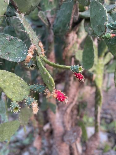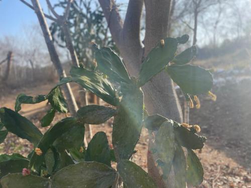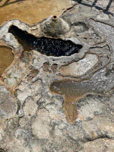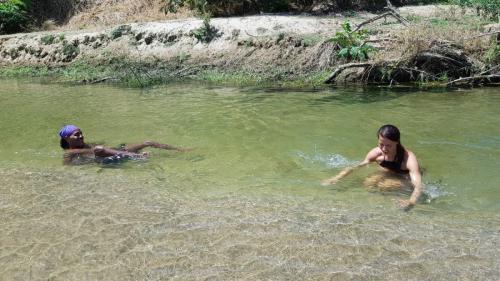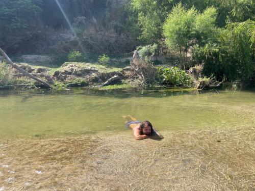 Bei der Erkundung des Geländes gelangen wir schließlich auch an den Fluss, der einen tiefen Einschnitt im kaktusreichen und steinigen Gelände bildet und dessen Ruhe uns unmittelbar in seinen Bann zieht. Zwischen Kaulquappen, Flusskrebsen und Vögeln kühlen wir uns in dem seichten Gewässer ab und genießen diesen Kraftort. Zurück beim Gemeinschaftsbereich der Workawayer lernen wir dann noch Ibrahim aus Marseille kennen, der bereits seit 1 Woche hier aushilft und mit dem wir die Hütte teilen.