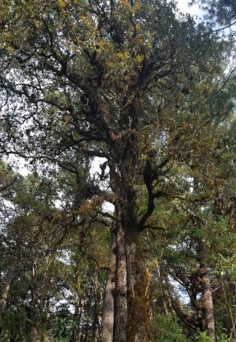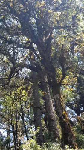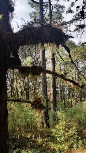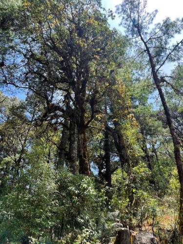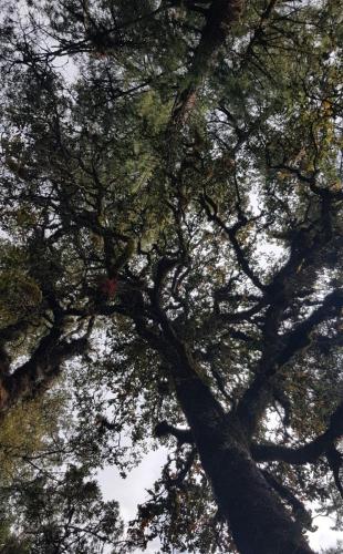 Von Moskitos zerstochen und mit der Hoffnung auf Besserung von Matthias Ohren machen wir uns auf in höhere Gefilde: San Jose del Pacifico. Unser Weg führt auf einer Strecke von 150 km über gefühlt 7641 Serpetinen, die zusätzlich durch die Schlagloch-Dichte Matthias‘ Aufmerksamkeit bis zur Erschöpfung fordern, von 0 auf 2.500 Höhenmeter. Dabei kommen wir anfangs wie so oft, an vielen Ortschaften vorbei, in denen man Markenzeichen wie Coca Cola oder Bridgestone oder den Namen des eigenen Geschäfts mit Pinsel und Farbe an Hausmauern anbringt – mal sieht es fast wie ein Druck oder kleines Kunstwerk aus, manchmal aber auch wie von der Hand eines Volksschülers gemalt. In den unbewohnten Gegenden fühlen wir uns dann als wären wir auf hawaiianischen Dschungelstraßen unterwegs, die sich mit zunehmender Höhe in einen Nadelwald und kurz vor San Jose dann in einen Nebelwald verwandeln.