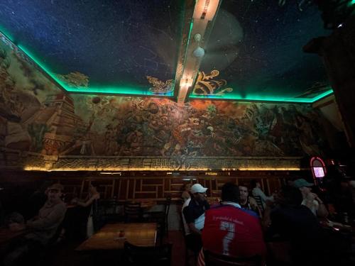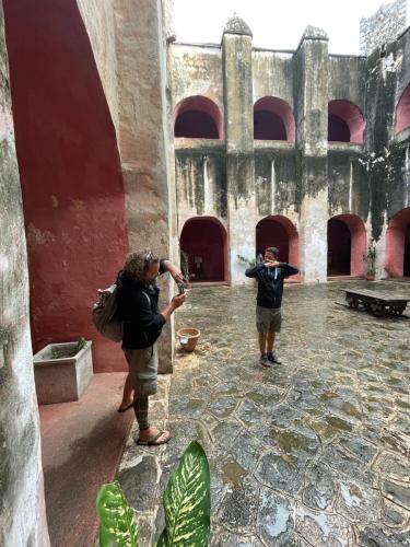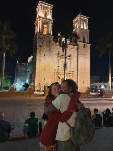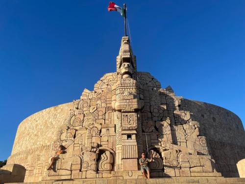 Zurück in der modernen Zivilisation, landen wir schließlich in Merida, wo wir einmal mehr auf die Suche nach großen gemütlichen Plätzen in der Stadt oder Grünflächen gehen. Während erstere offensichtlich Bauarbeiten zum Opfer gefallen sind, scheinen letztere wohl hitzebedingt keine Überlebenschance zu haben. Bis auf eine lange Flaniermeile, die aber eher geldigeren Touristen vorbehalten zu sein scheint, fehlt der Stadt unserer Meinung nach ein wenig der Charme. Gut, dass wir hier nur 2 Nächte gebucht haben – unter anderem auch, weil sich die Designer der Ventilator-Lampen-Kombination in Falkos Zimmer wohl irgendwie „verdacht“ haben und die Flügel des Ventilators einen blinkenden Diskoschatten werfen, von dem man sich als Epileptiker:in einfach nur fernhalten sollte. Für uns steht jedenfalls fest: das mit der Erkundung von Städten lassen wir in Yucatan jetzt lieber mal bleiben.