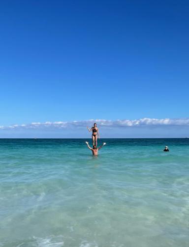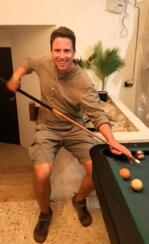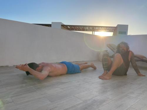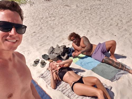 Wir versuchen dennoch das Beste aus unserem Aufenthalt in einer sehr schönen und verhältnismäßig günstigen Penthouse-Wohnung zu machen und gehen mit Falko den teuflischen Pakt ein, uns gegenseitig täglich zu mindestens 2 Trainingseinheiten zu motivieren. In der Früh starten wir also mit einer Runde Yoga und ein wenig Krafttraining auf der Dachterrasse in den Tag, verköstigen uns dann – übersättigt von der fettigen, teig- und fleischlastigen mexikanischen Küche – selbst mit einem guten Frühstück, binden Falko in unseren intergalaktischen Sternenkrieg ein, tanken Sonne am Strand und schauen dabei Leuten zu, wie sie sich in der türkisblauen Kulisse für einen guten Instagram-Schnappschuss bis zum Bandenscheibenvorfall räkeln und im Sand wälzen, versuchen mit verminderter Fallhöhe und fluidem Auffangbereich Menschentürme (vorwiegend auf Matthias) zu bauen, und schnabulieren am Heimweg dann eine gute Torta an einem Grillstand oder machen noch ein zweites kleines Workout, um uns danach mit selbstgekochten Gemüsegerichten zu belohnen.