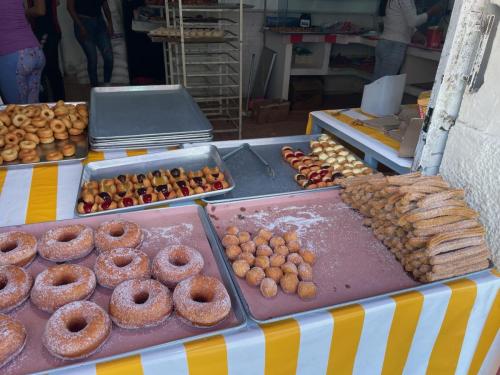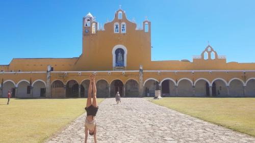Am Weg nach Tulum brechen wir dann doch noch mal mit unserem Vorsatz, keine Stadt ohne Meerzugang mehr zu besuchen, und fahren für ein Frühstück das Städtchen Izamal an. Worüber sich dort wohl alle Stadtbewohner:innen einig sind: nur eine gelbe Fassade ist eine schöne Fassade. Aber nicht nur die gelbe Einheit gibt der Stadt einen äußerst charmanten Touch, sondern auch der Markt im Zentrum ist sehr nach unserem Geschmack. Statt auswendig gelernte Gerichte von elendslangen Speisekarten entgegengeschrien zu bekommen, gibt es hier viele kleine Stände, die sich meist auf ein bis maximal fünf Gerichte spezialisiert haben, die man auch direkt in der Auslage betrachten kann und deren Preis offensichtlich keinen Touristenzuschlag enthält. Nachdem Sabrina am Marktplatz noch erfolglos versucht, einem wohl falsch informierten Holländer dabei zu helfen, ein in der Region angeblich berühmtes Gericht – und zwar eine mit Käsefondue gefüllte Brotschale – zu finden, von dem hier aber niemand weiß, beweist Falko noch ein weiteres Mal seine Chauffeurfähigkeiten und bringt uns trotz vieler weiterer böser Bremshügel, die oftmals ohne Vorwarnung auftauchen und einfach nur wie ein Baumschatten aussehen, heil und sicher nach Tulum.