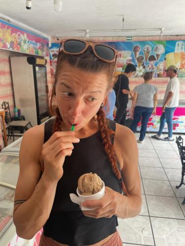 In unserer Unterkunft angekommen, werden wir direkt von einer Künstlerin und Aktivistin über die Wasserknappheit im gesamten Bundesstaat Oaxaca aufgeklärt, und vor allem über die fehlende Aufklärung in Tourismus-Gebieten. Denn während Mexikaner:innen von klein auf einen sparsamen Umgang mit Wasser lernen und für ihre Dusche höchstens ein paar Schöpfer aus einem Wasserkübel über sich werfen, verbrauchen einzelne Tourist:innen mit einer Dusche ein Vielfaches des Tagesbedarfs der Einheimischen. Froh darüber, zu verstehen, warum manche Klospülungen hier entweder gar nicht oder sehr schwach funktionieren, oder so mancher Wasserhahn oder Dusche nur ein dünnes Rinnsal bietet, versuchen auch wir unseren Wasserverbrauch an die Gegebenheiten anzupassen.